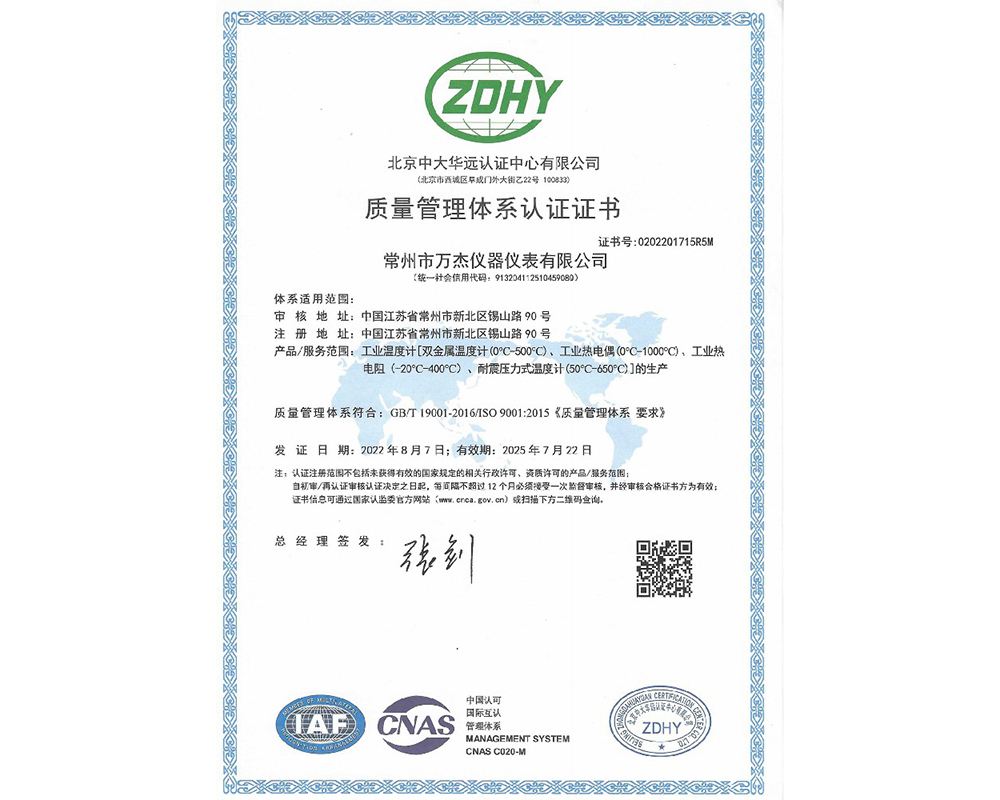 质量管理体系认证证书